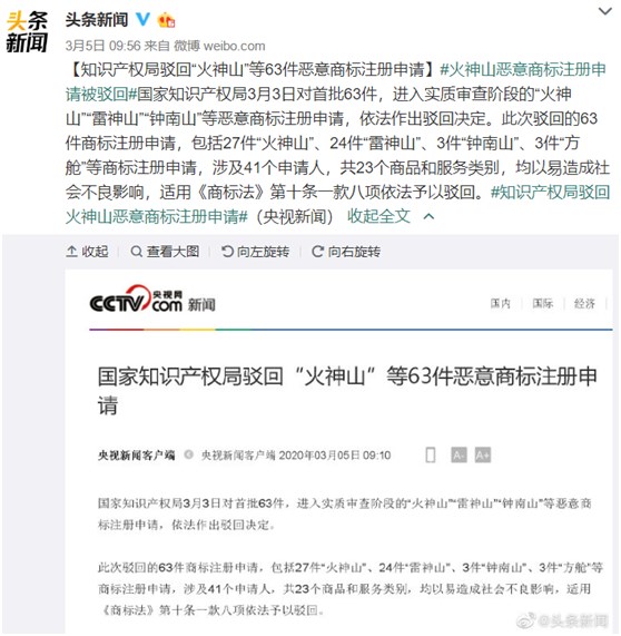 但是,發(fā)展迅猛的廣告行業(yè)中也出現(xiàn)了許多違法亂象,比如火神山”“雷神山”“鐘南山”等惡意商標(biāo)注冊(cè)申請(qǐng)。